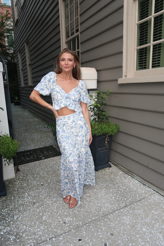 Halo Blue Floral Skirt Set